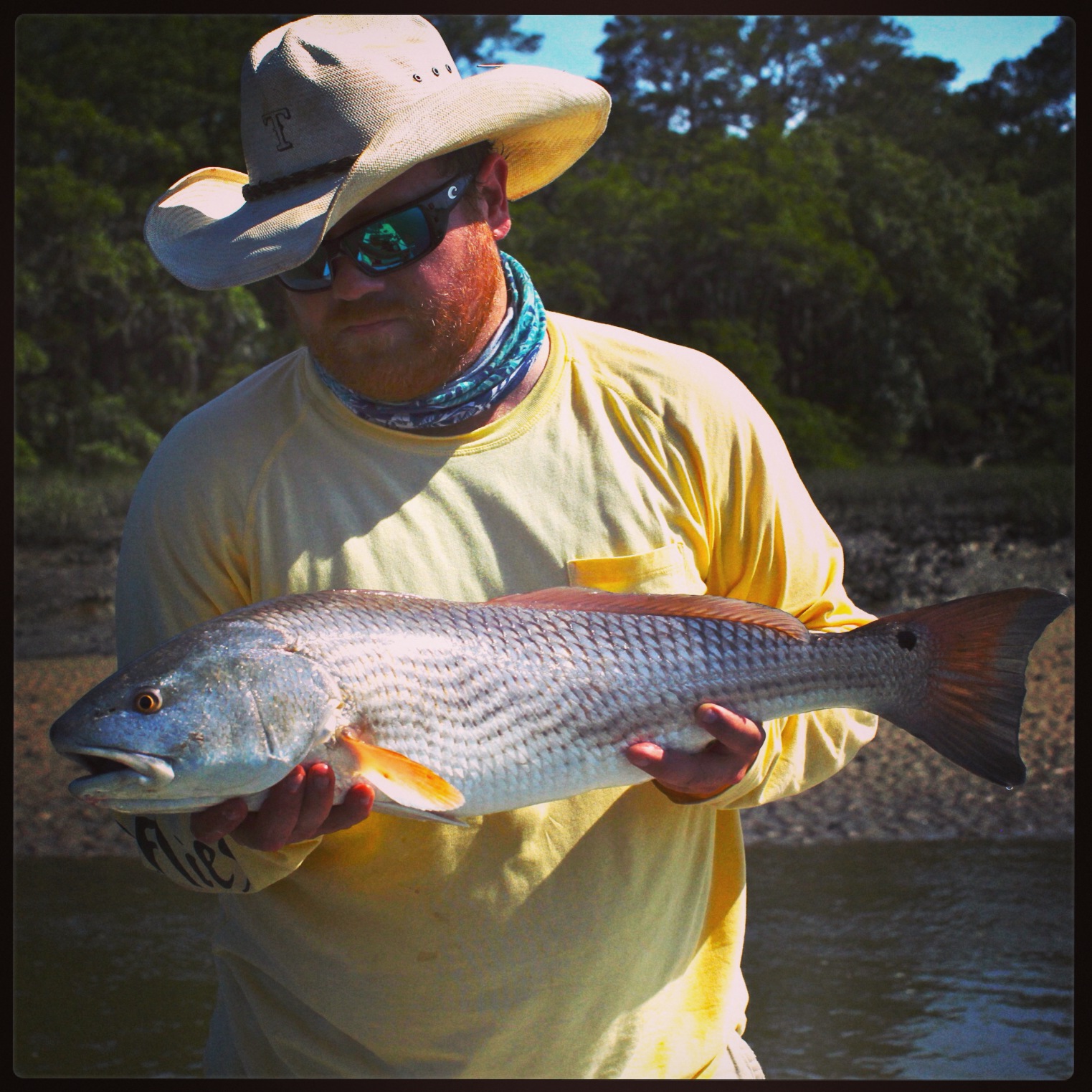 If you haven’t checked out Doug Roland and Ryan Rice’s blog of short films and photos, then check it out, lots of good stuff. (www.LowcountyJournal.com) These guys have come a long way in a year, recording and logging a lot of hours on the water and it shows on the short films they make. On Memorial Day, yesterday, we got out on the water and went looking for the reds in the grass, outta the grass in the mud…wherever we could find them, and they were in all of the above. We got into some skinny water, the lowest low of the year…we found out the hard way, or almost the hardest way. As the water rifled through the creeks, we finally decided to start escaping while we still had water. Trenching the boat through 100 yards of mud, we finally got to some water that carried us out. Until then we had fish all around us, almost too many to choose one. We picked off a couple before we were pushed out. After the muddy post-holing, we came to the confluence of a couple creeks which held these fish as they were flashing and thrashing glass minnows. Just watching these fish was entertainment enough as they would turn on their sides showing us the gold. We caught a couple more then decided to let them have the creek to themselves. All day today I was wishing I was back there, in that same spot…but what I have come to realize is, everyday is different…the fish are never in quite the same spot, they act different, they eat different, they react different, you are never the same either….your casting sucks today, you left the good fly at home…thats what I love about this interaction, its never the same, thats what makes it amazing! Cheers to fishing with friends and sharing these amazing days and never forgetting them.